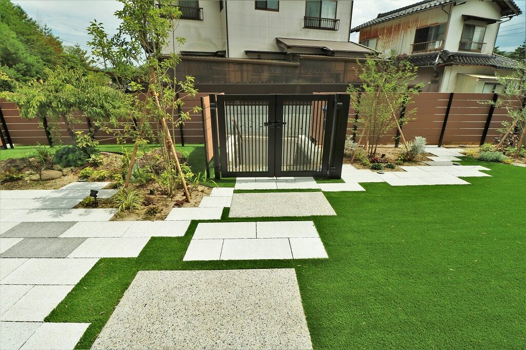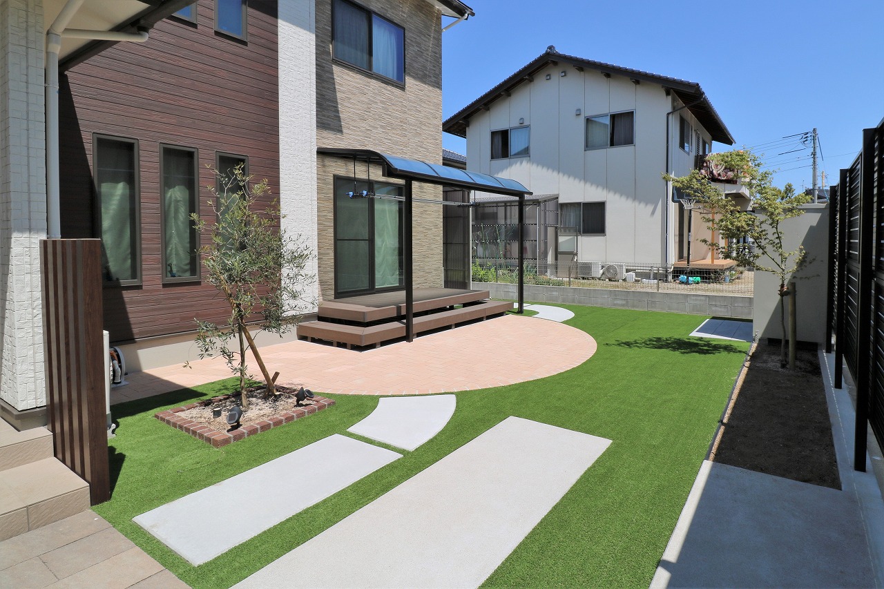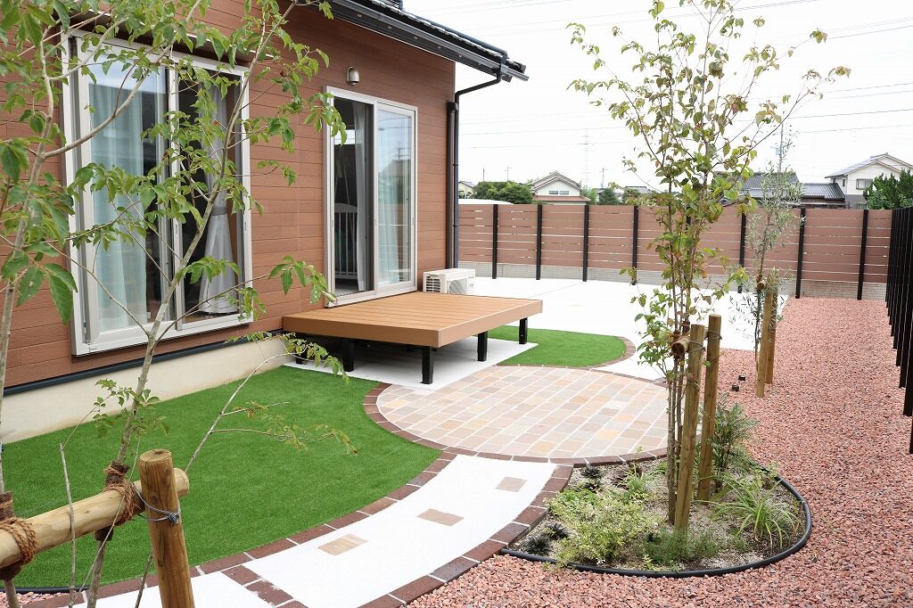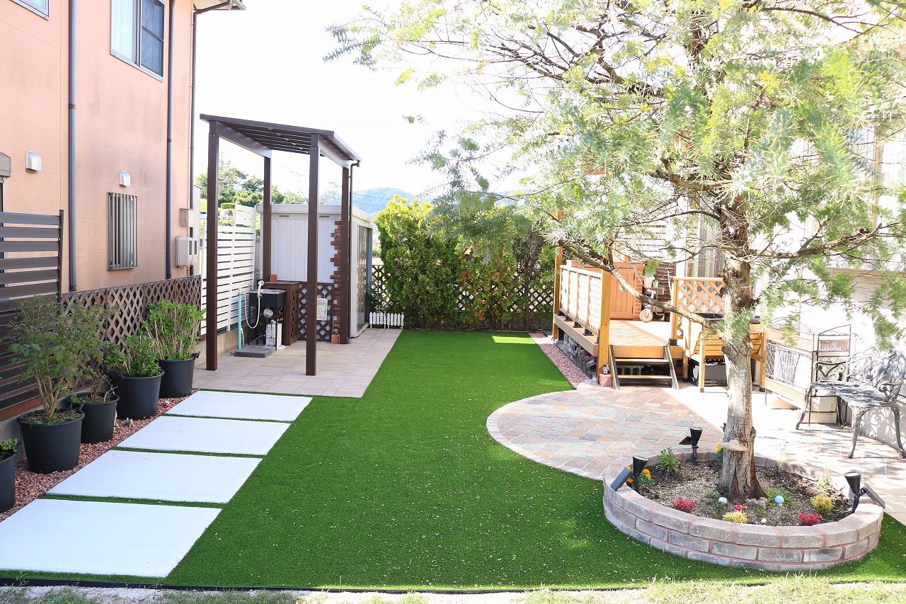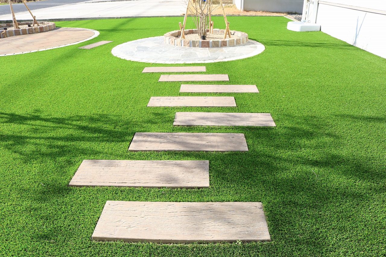 安心して遊べる庭にするなら 人工芝の組み合わせたデザインが最適!